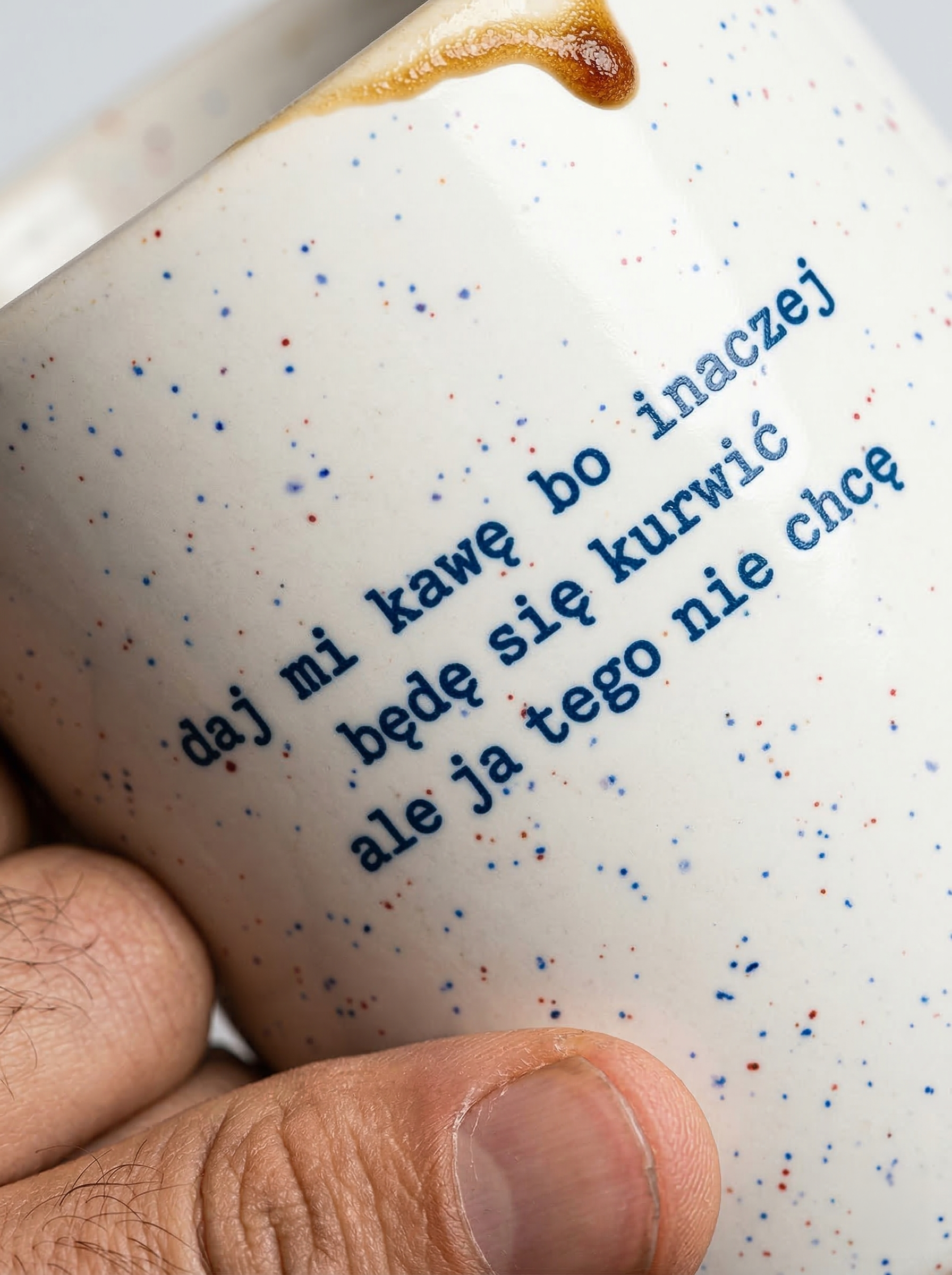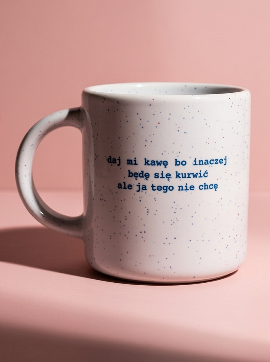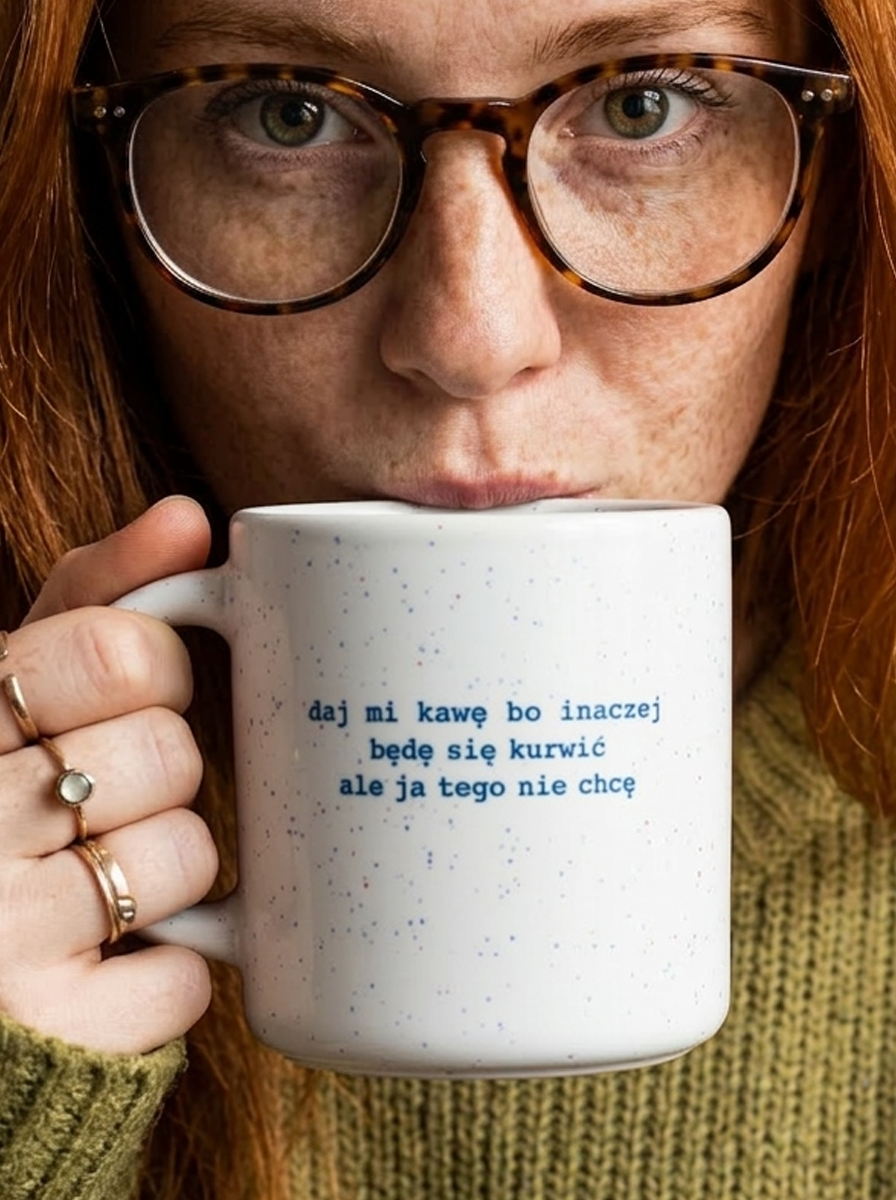 Szantaż emocjonalny to proste narzędzie, ale nikt nie powie, że nie działa. Zwłaszcza rano, kiedy twój mózg odmawia jakiejkolwiek współpracy z ciałem. Ten kubek to rzucona na stół groźba. Komunikat jest jasny: dostarczacie mi szybko kawę, a ja powstrzymuję się przed robieniem dramatycznych scen, których nikt z nas nie ma ochoty dzisiaj oglądać.