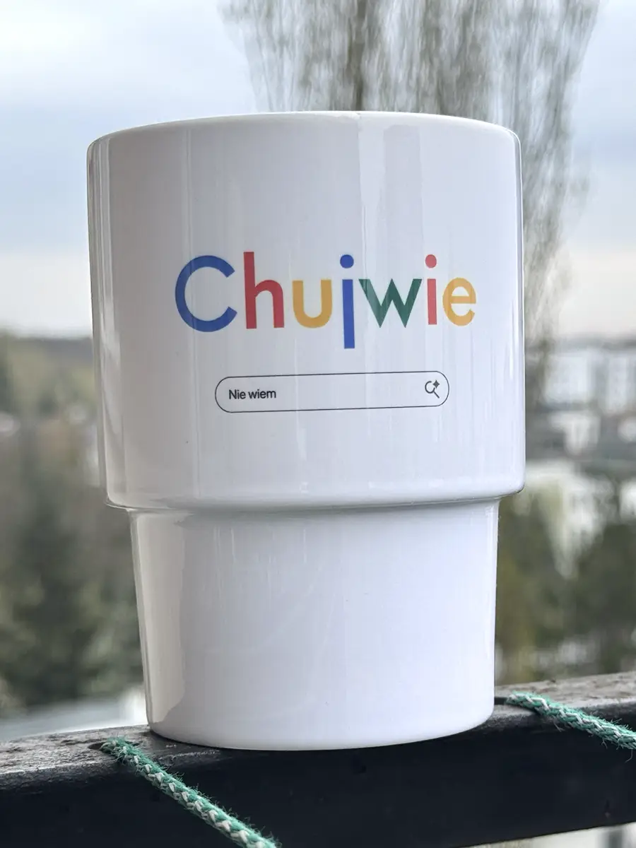 Kubek do kamuflażu braku wiedzy. Proste naczynie, które ratuje sytuację, gdy nie wiesz zupełnie, o czym mowa. Kiedy pada niewygodne pytanie, ten kubek daje ci idealną wymówkę. Podnosisz go powoli i pijesz. Bardzo długo, patrząc w jeden punkt. Wszyscy wokół zakładają, że w ciszy analizujesz trudny problem. W rzeczywistości w twojej głowie ładuje się błąd 404, a ty liczysz tylko na to, że zaraz ktoś inny zabierze głos i zmieni temat.