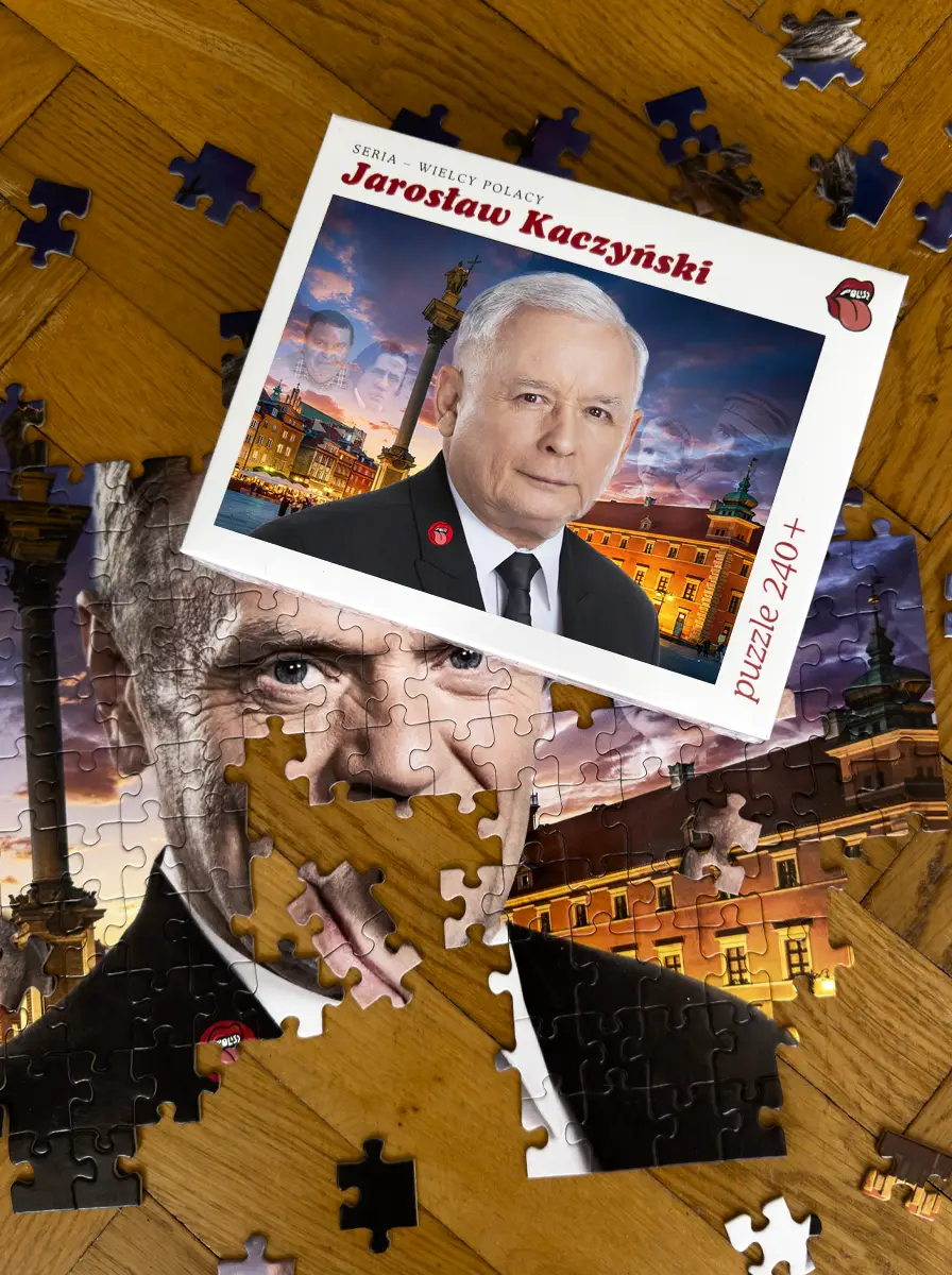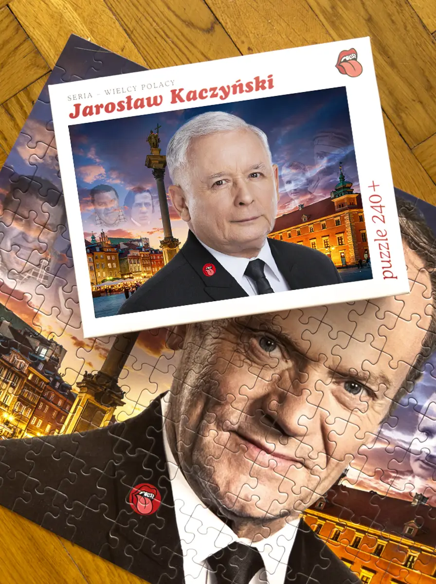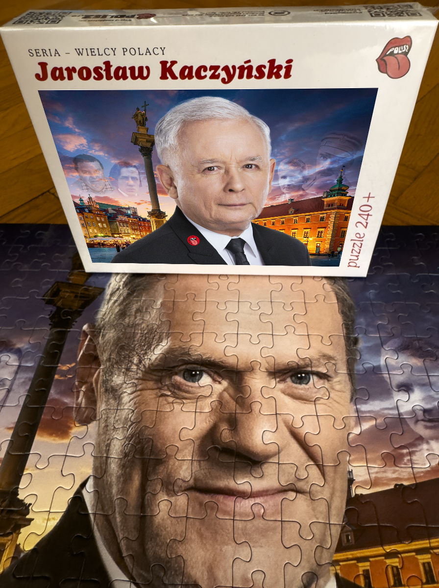 Z każdym ułożonym fragmentem twarz na tekturze staje się coraz mniej znajoma. Gdzieś w połowie układania, gdy zamiast charakterystycznego układu brwi pojawia się ten słynny, rudawy błysk i niemiecki uśmiech, dociera do Ciebie prawda. Zamiast zbawcy narodu, na stole powoli materializuje się Donald Tusk we własnej osobie.