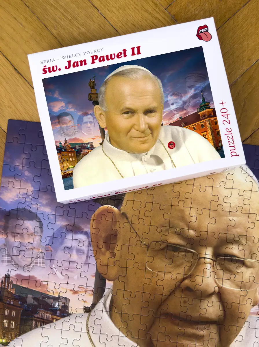 Seria „Wielcy Polacy” zobowiązuje do najwyższego szacunku wobec postaci o fundamentalnym znaczeniu dla polskiej tożsamości. Pudełko dumnie prezentuje majestatyczny portret Jana Pawła II, zapowiadając 240 elementów duchowego skupienia i rodzinnej harmonii. Obdarowany ma pełne prawo spodziewać się papieskiego błogosławieństwa na kawałkach sztywnego kartonu, co czyni z tego produktu pozornie idealny i bezpieczny prezent.